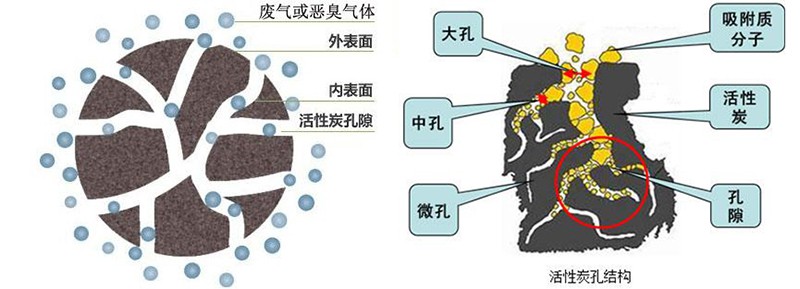 根據(jù)吸附過程中,活性炭分子和污染物分子之間作用力的不同,可將吸附分為兩大類:物理吸附和化學吸附(又稱活性吸附)。廢氣中的有機成分被吸附到活性炭纖維的微孔中,從而在炭纖維微孔內(nèi)形成一層平衡的吸附濃度,由于分子之間擁有相互吸引的作用力,當一個分子被活性炭內(nèi)孔捕捉后,會導致更多的分子不斷被吸引,直到添滿活性炭纖維孔隙為止。須指出的是,不是所有的微孔都有吸附作用,這些被吸附的有機物分子的直徑須是要小于毛細孔的孔徑,即只有當孔隙結(jié)構略大于有機物分子的直徑,能夠讓有機物分子完全進入的情況下才能保證被吸附到微孔中,過大或過小都不行,這需要通過不斷地改變原材料和活化條件來創(chuàng)造具有不同的孔徑結(jié)構的吸附劑,從而適用于各種有機物的吸附。